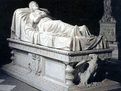 Das Mausoleum im Schlossgarten Charlottenburg wurde 1810 unmittelbar nach dem Tode der Königin Luise nach detaillierten Vorstellungen ihres Ehemanns, des preußischen Königs Friedrich Wilhelm III., und unter Mitwirkung Karl Friedrich Schinkels durch den Architekten Heinrich Gentz in nur fünfmonatiger Bauzeit errichtet. Schon am 23.12.1810 wurde Königin Luise im Mausoleum beigesetzt, nachdem sie am 30.07.1810 zunächst im Berliner Dom ihre Ruhestätte gefunden hatte. Den Sarkophag mit der berühmten Liegefigur der Königin Luise schuf der Schadow-Schüler Christian Daniel Rauch (1777-1857) aus Carrara-Marmor. Das berühmteste Grabmal des deutschen Klassizismus konnte Rauch nach mehrjähriger Arbeit im Mai 1815 im Charlottenburger Mausoleum aufstellen.